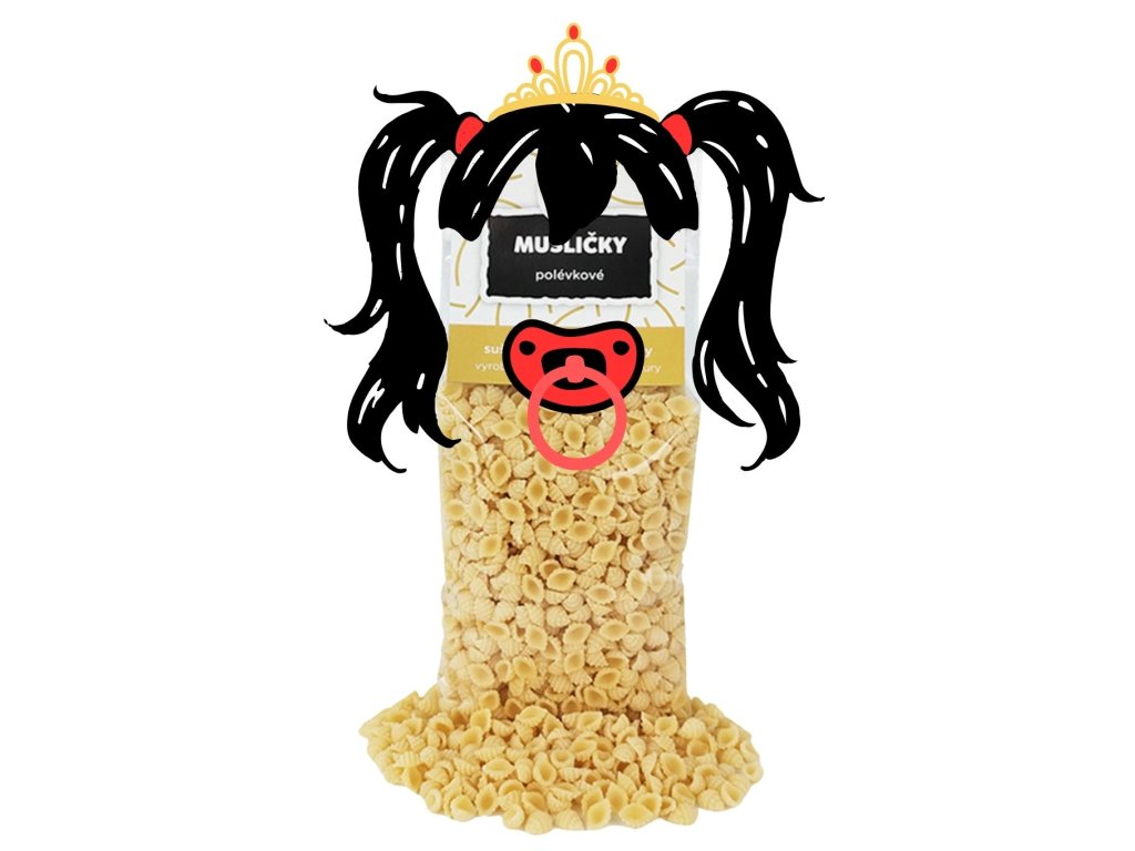 V naší Nudlové rodince jim říkáme malá Mušličková princezna. Okouzlí vás svou něžností a její roztomilost vás přesvědčí, že právě ona je tím chybějícím kouskem vašeho polévkového království.